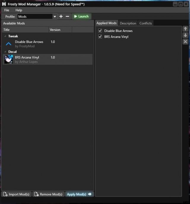 Mod の有効化が完了したら、ウィンドウの下部にある [Apply Mod(s)] ボタンをクリックし、[Launch] をクリックします。