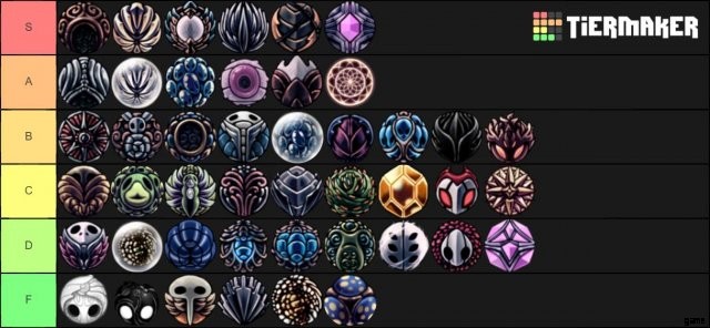 - バルダーシェル: Baldur Shell は、その価値に対してスペースを取りすぎるチャームです。つまり、回復するとシールドが得られますが、パニック回復でない限り、それから多くの価値は得られません.仮面を回復してから0.1秒で回復中に打たれることが多いので、回復後に無敵になるお守りの方がいいです。そして、クイック フォーカスは、もう 1 ノッチすることではるかに優れています。バルダー シェル、Tier D
