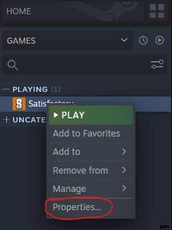 ライブラリでゲームを右クリックし、[プロパティ] を選択します。