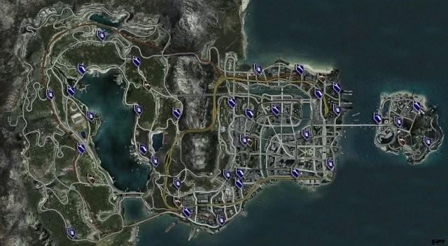 このガイドは、スマッシュ、ビルボード、スタント ジャンプ、BSI スマッシュ、BSI ビルボード、メガ ジャンプ、駐車場、ドライブ スルーを見つけるのに役立ちます。地図をクリックして拡大表示してください。