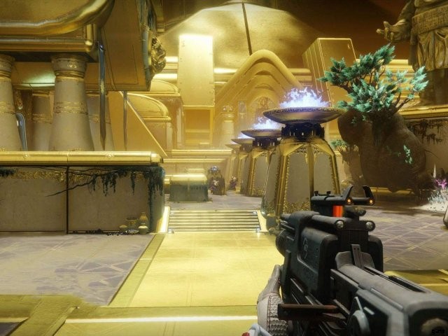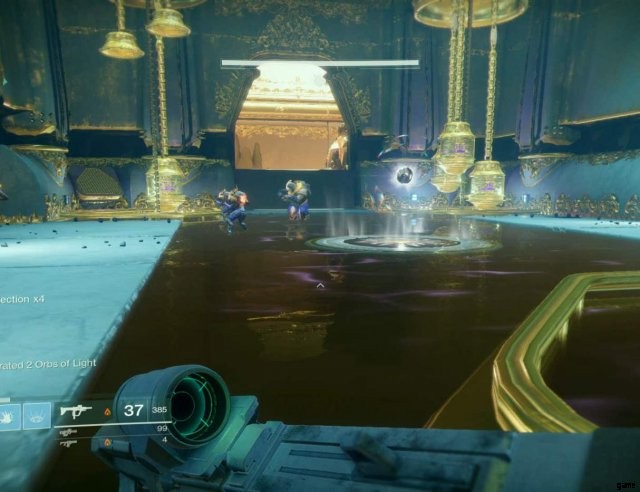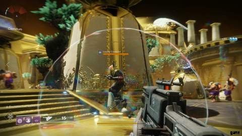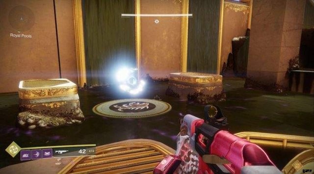 庭に入るとすぐに、大量のカバルの敵が見えます。それらをすべて殺して、遭遇の準備をします。すべての追加が終了したら、金色のドームのような建物に向かいます。上にジャンプすると、2 つのクリスタルが表示されます。チームを 2 つのグループに分けます。 1 つのグループには 4 人のプレイヤーがいて、もう 1 つのグループには 2 人のプレイヤーがいます。宝石を拾って出会いを始めましょう!