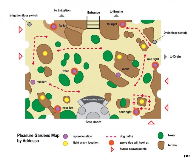 画像セクションに役立つ地図があります。胞子と犬の位置が詳しく説明されています。