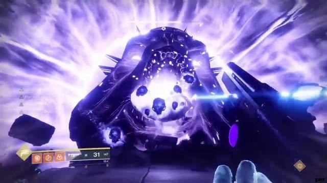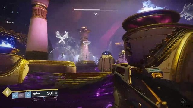 カルスの頭に近づくと、彼は頭蓋骨を吐き出し始めます。これは、自動小銃または機関銃が重宝する場所です。玉座のプレイヤーが死なないように、できるだけ多く、できるだけ早く破壊します。妥当な量の頭蓋骨に到達したら、Force of Will バフが有効になり、Throne Player に Calus のシールドを破壊するように伝えます。次に、飛び出して、サンプレートまたはカッププレートのいずれかに向かいます.ボス戦の時間です!