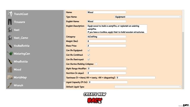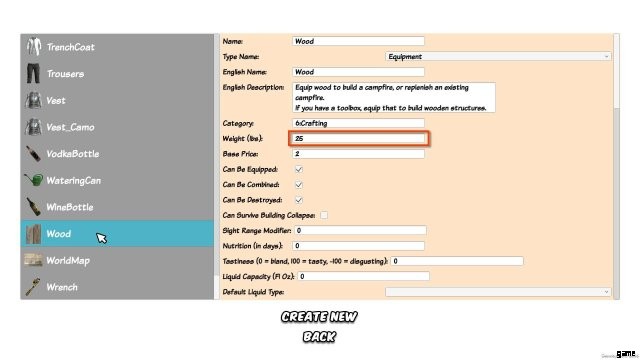 - バックパックの容量が少なすぎませんか?エディターでこれを変更します。バックパックをクリックして「重量」までスクロールし、100 に変更します (次にセーブをロードするときにそのバックパックがあれば自動的に適用されます。新しいものを作成する必要はありません)。