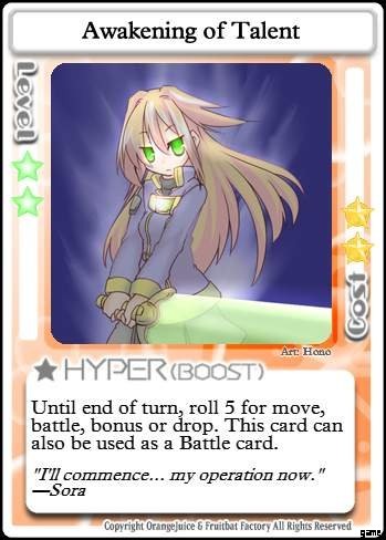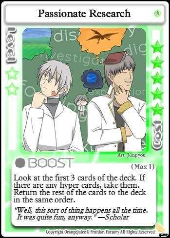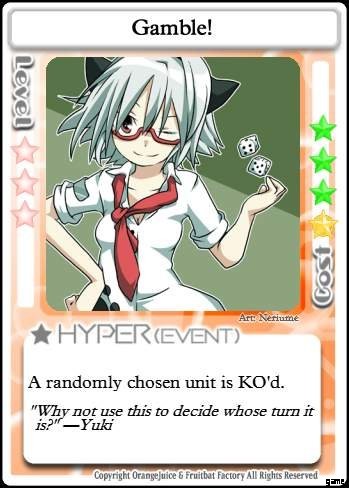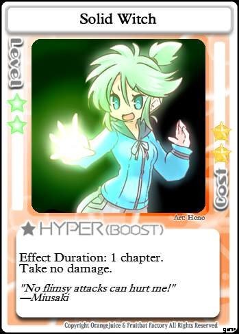 - 最後に、カードのメカニズムが一般的なゲームのメカニズムと矛盾する場合、そのカードはルールの例外として扱われます。最後のことはめったに起こりませんが、100% オレンジ ジュースでさえ、その概念は見知らぬ人ではありません。ミリタリーソラのハイパーはブーストカードですが、カードにはバトルでも使えると書いてあるのでバトルでも使えます!