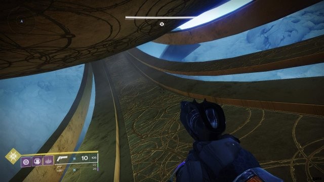 ボスアリーナの周りには、これらのリングが表示されます。困難な場所にいて、隠れる場所が必要な場合は、いつでもマップの下に飛び降りることができます (リング上にいる間)。テレポートされて、エリア内の「安全な」場所に戻ります。これは構造物の 1 つの上にあります。