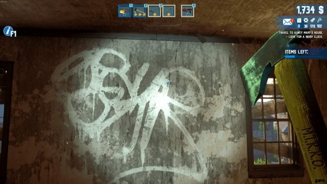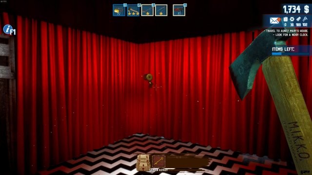 その後、シーソーの外に出て、上が家に面している場所にシーソーを持って行き、はしごに飛び乗って時計を手に入れます:
