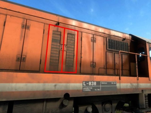 機関車の右側にあるエンジン パネルを開きます。