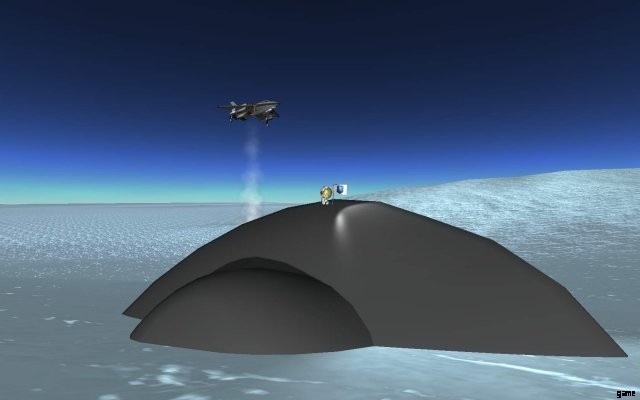 元々は地形の不具合でしたが、モホール (モホの北極にある大きくて急な垂直の「トンネル」) はイースターエッグと見なされることが多く、実際、後に開発者によって「正規化」され、独自のバイオーム (「北の陥没穴」) が与えられました。 ”) と KerbNet 異常マーカー。