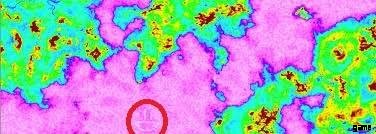 KSC のすぐ南の海、陸地と南氷冠のほぼ中間 (南緯 30 度 0 分 0 秒、西経 80 度 0 分 0 秒) には、海底に刻まれた巨大なスマイリーフェイスがあります。
