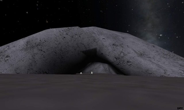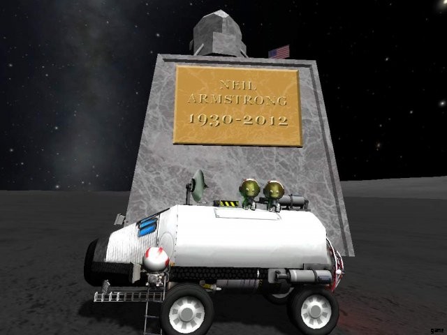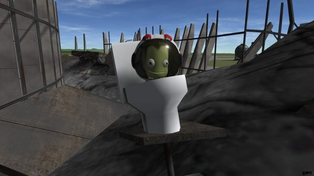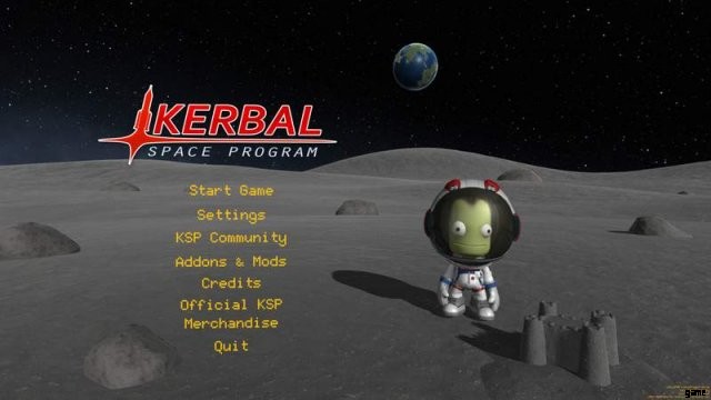 One of the two main menu images is that of a Kerbal standing on the Mun’s surface, with Kerbin in the background. There is a 1 in 40 chance that a sand castle made of Mun dust can be seen near his feet.’