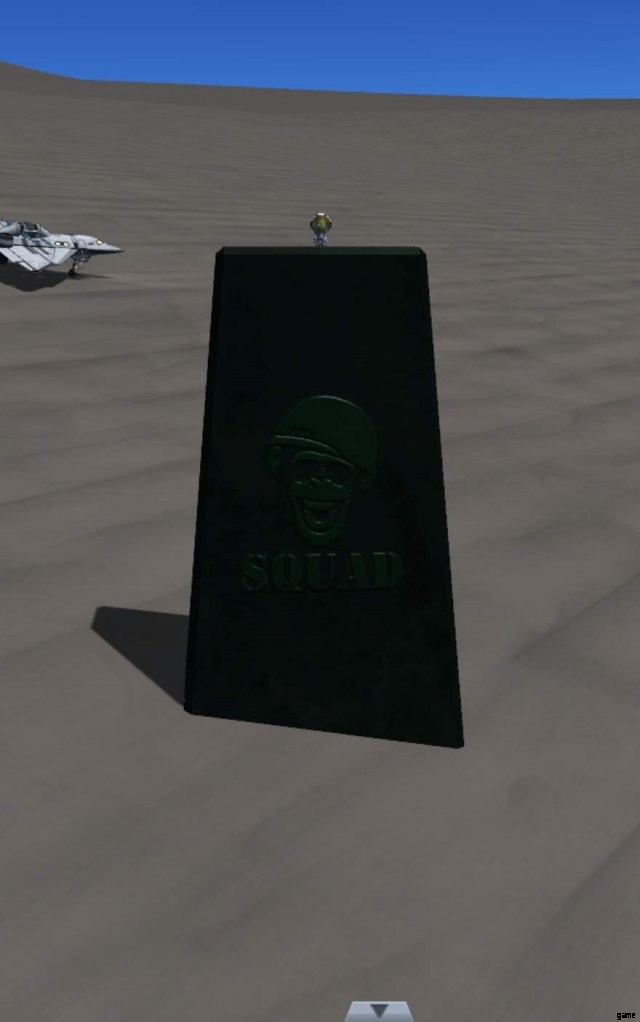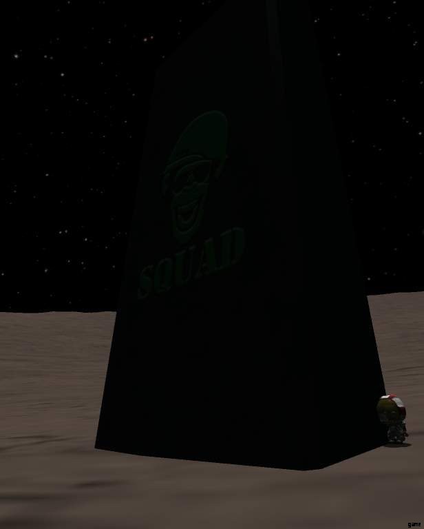 In a forum post from late 2013,[1] Squad member Jeff C.(NovaSilisko) described an idea he had for connecting many easter eggs into a story concerning a civilization which predated the Kerbals. Experiments with interstellar travel resulted in the homeworld of this “precursor civilization” being flung out into an extremely distant orbit. Before they froze to death, they launched monoliths and other messages onto many planets and moons in hopes of seeding intelligent life. Instead, they created Kerbals, not-so-intelligent life.