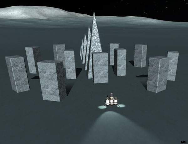 5 つのモノリス:1 つは KSC から、1 つは Inland Kerbal Space Center (20° 40′ 15″ N 146° 29′ 48″ W) のトラッキング ステーションのそば、1 つは 35° 34′ 13″ N 74° 58′ 38 にあります。 ″ W、0° 38′ 25″ S 80° 46′ 0″ W、および 28° 48′ 30″ S 13° 26′ 24″ W.