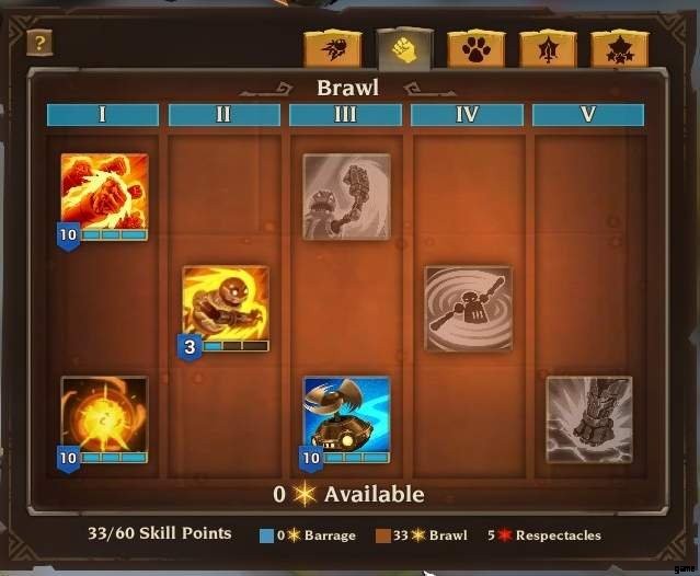 ブロウラー ツリーのすべてのスキル。弾道スキルを取得する必要はありません。 Brawler スキルを強化すると、通常、残りのスキルにボーナスが与えられます。たとえば、ティア 3 でのラピッド ストライクは +% の brawler スキル ダメージを与え、Power Projection はキャスト時に 1 秒間の無敵性と時間の経過とともに回復する効果などを与えます。