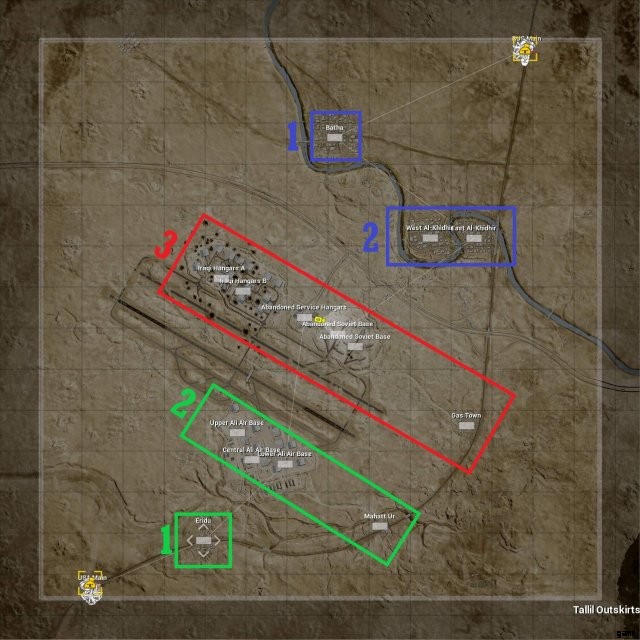 - 重要:あなたのチームは敵よりも数分速い可能性があり、最初は争われずに中央の目標を達成できるため、せっかちなプレイヤーは敵を見つけようとして自力で逃げ出す可能性があります。敵を発見するチャンスが増えるため、これはある程度有益ですが、分隊の結束には注意してください。最初の接触までに分隊が散らばりすぎていると、状況に対応できなくなり、分隊がまとまりのある敵の分隊に 1 つずつぶつかり、選択されます。