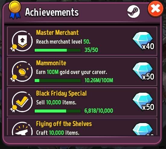 まず、この戦術を開始するには宝石が必要です。この戦術に必要なジェムの推奨量は、1 回の使用で約 7 ジェムです。ジェムを無料で入手する最良の方法は、「アチーブメント」を完了することです。特定のレベルに到達したり、一定量のアイテムを作成したり、ボスを倒したり、チェストを開いたりするだけで、実績を達成できます。各アチーブメントは、難易度に応じて一定量のジェムを獲得します。ジェムが多いほど難しくなります。