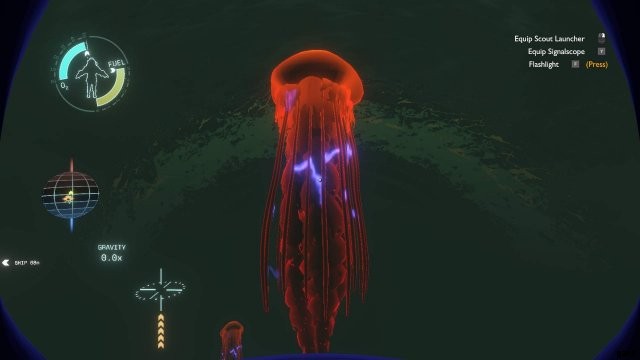 まず、光るクラゲの 1 つを見つける必要があります。そこまで泳ぎ、その真下に身を置きます。これはあなたを刺さない唯一の場所です。次に、ジェット パックを使用して、その中に直接飛び込みます。頭の空洞まで通り抜ける必要があります。