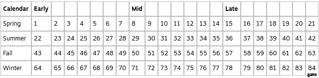 - All crops have different stages as well different final yield when planted with different farming levels.
