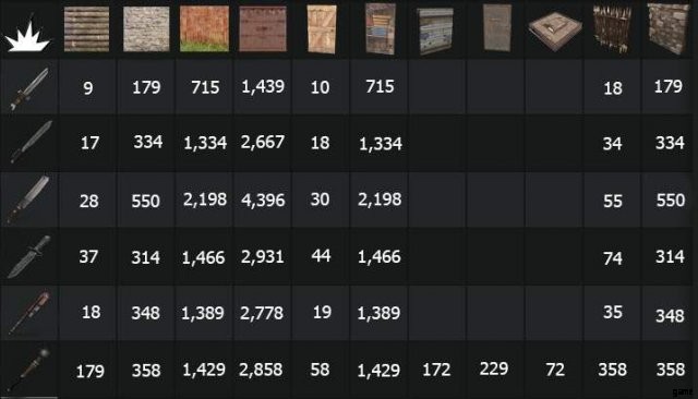 近接武器を使用した襲撃のコストに関する小さなガイドと使いやすいチャート。