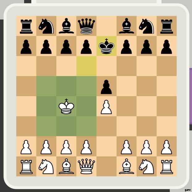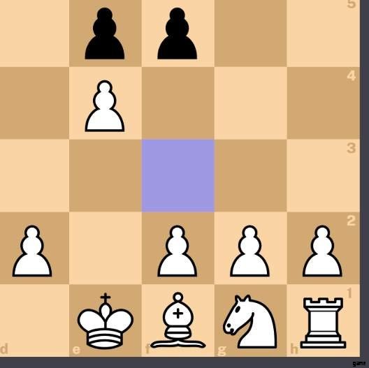 - したがって、現在 (またはプレイ可能な盤面) の駒が「過去」のキングとスペースの 1 つを何らかの形で交差した場合、それは自動的にチェックメイトになります。