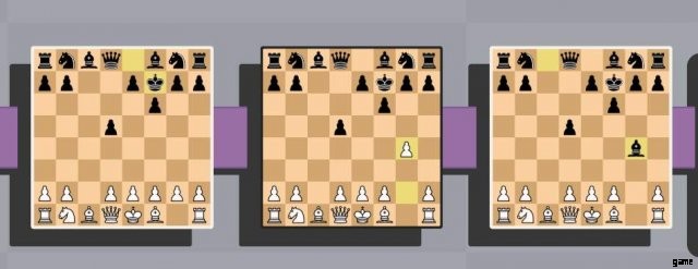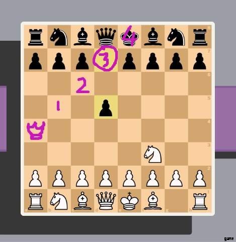 通常のチェスでは、これは標準的なオープニングであり、相手のキングと自分のクイーンをチェックしようとすると、次のような展開になる可能性があります: