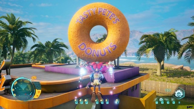 - そこに着いたら、ジェットパックを使ってドーナツの真ん中を飛んでください。