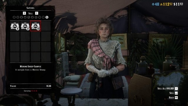 Emerald Ranch から McFarlane Ranch へのファスト トラベル (7.5 ドル) を購入し、Harriet まで乗車します。動物のサンプルを販売し、鎮静剤の弾薬を補充します。うまくやれば、1 回の実行で約 900 ロール xp を獲得できるはずです。羊自身は、完全な 10 スタックに対して 570xp から 620xp を提供します。 (私は無法者パスから 15% の xp ボーナスを持っているので、それも取得してください。ロールからの XP でレベルを上げることができ、ロールにも役立ちます。また、40 個の金の延べ棒が戻ってきます)。