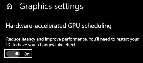 ハードウェア アクセラレーションによる GPU スケジューリングをオンにしてから、PC を再起動します。早くやれよ。 GPU メーカーは、それが最善であり、私たちの誰よりもよく知っていると言っていました。