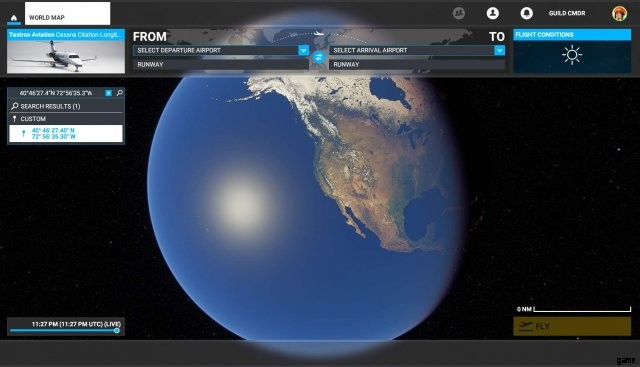 - シムに移動し、座標を検索に貼り付けます (左側の飛行機の下)。