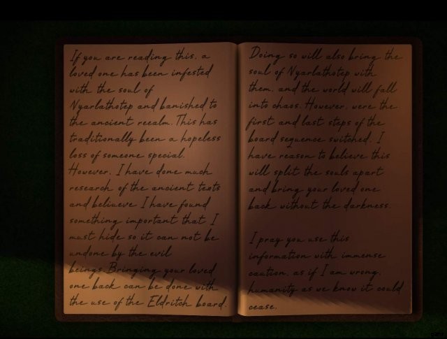 ニャルラトホテプの目は、時々見ないと箱を盗んでしまいます。ボックス内のメモには、グッド エンディングを取得する方法が記載されていますが、グッド エンディングがなくても最後まで到達できます。