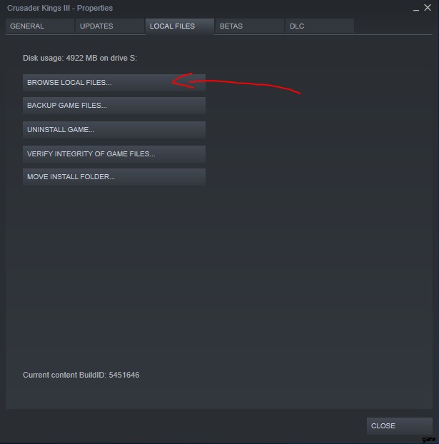 ゲームを右クリックして、ローカル ファイルを参照します。