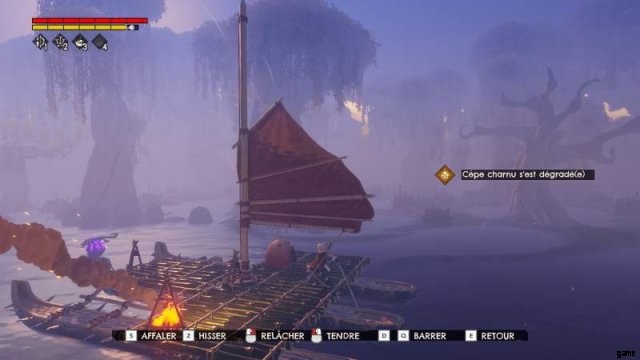 - 最初のカヌーでは、まず食べ物を調理するための火を起こし (そしてできるだけ早く物干し台に進化させます)、次にマストを立てます。バスケットは最初は何の役にも立ちません。