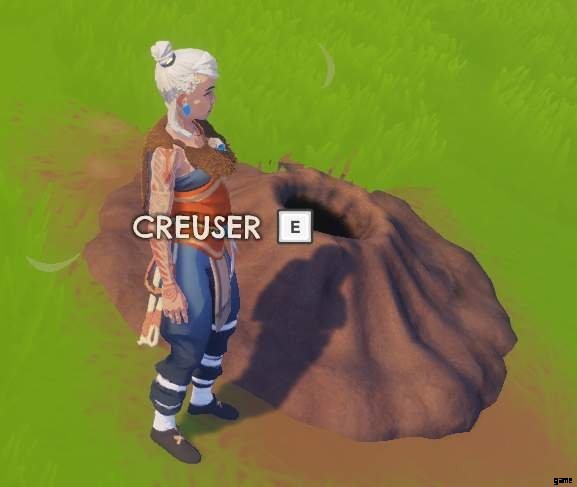 - シャベル、斧、ハンマーなど、このツールを必要とするリソースを収穫したいだけでロックが解除されるものもあります。ゲームの開始時に、うさぎの穴 (または粘土) を収集する必要があります。この時点で、クラフトのロックを解除するツールの図が赤で表示されます。木材 (大きな幹) も同様です。