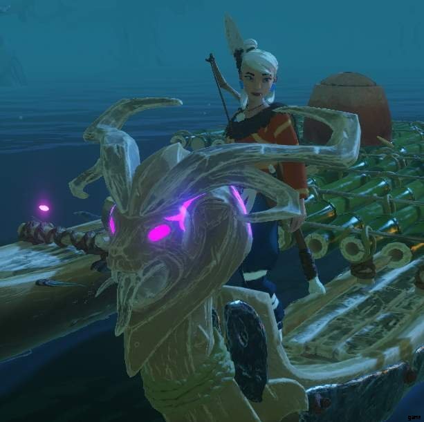 Bloomharrow 船首像 (セイル ホイスト ボタンを長押ししてロードし、離すと一時的なスピード ブーストが有効になります。風に逆らって航行する場合に便利です)