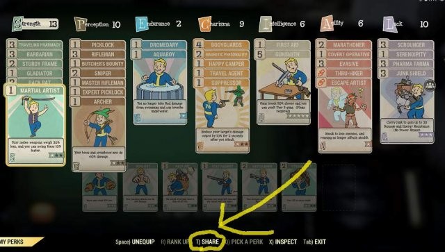 このメカニズムと、ゲームがそれについて教えてくれないという事実のために、あなたが入り、共有する特典を手動で選択することが重要です.特典を共有するには、特典のポイント数の 3 倍のカリスマ レベルが必要です。したがって、装備に 1 ポイントが必要な特典を共有するには 3 カリスマが必要です。装備に 4 ポイントが必要な特典を共有するには、12 カリスマが必要です。