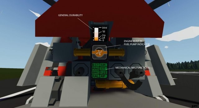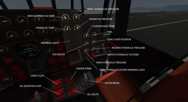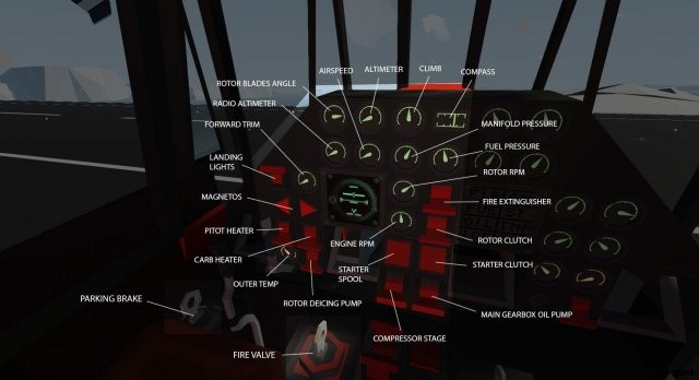 - サーボ ブースター – パイロットがヘリコプターを操縦する力を高めるために使用されます。ゲームでは、基本的に「オートパイロット」を有効にします。このヘリにはないオートパイロットではありません。高度、速度、または安定したホバリングを制御、維持するためにプレイヤーの仕事の一部を行うオートパイロット。ブースターなしでも飛べますが、制御が難しいです。 2 つの油圧システムを搭載しているため、それぞれが故障する可能性があり、ブースター システム自体が故障する可能性もあります。