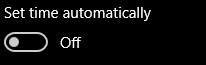 このオプションをオフにするには、[時間を自動的に設定] の下の [オン] スイッチをクリックします。