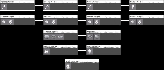 これらの2つのカテゴリをできるだけ早く完了するだけでなく、ゾンビへのダメージを増加させる「ゾンビハンター」(前提条件として「アニマルハンター」も取得する必要があります)と、インベントリサイズを増加させる「ポーター」の少なくとも1つのレベルも取得します.