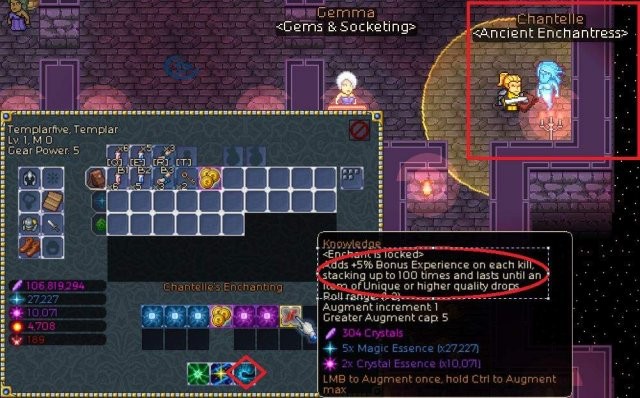 - ティンカのドメインのシャンテルを訪れ、グロッドの知識のコインにエンチャントして、最大 5% (最大) の XP ボーナスを獲得してください。