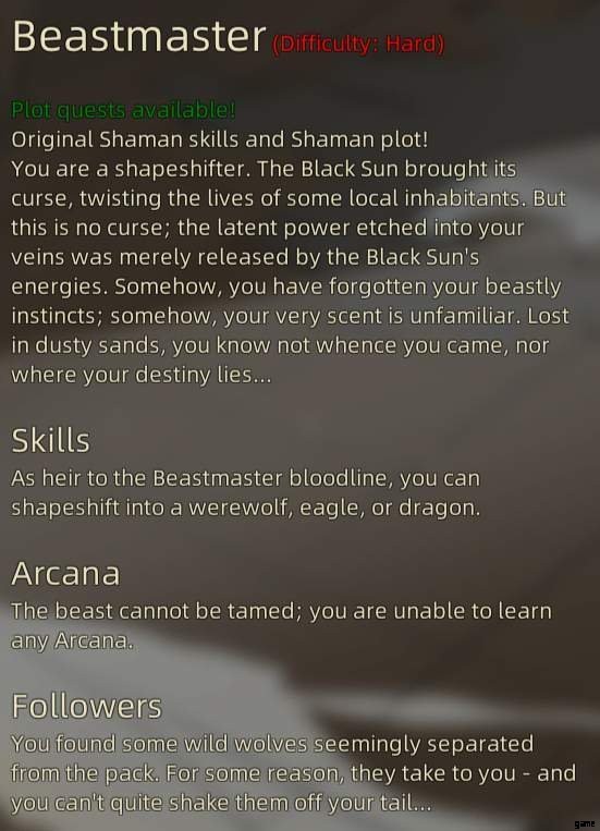 キルごとに +1 シャーマン ポイントが与えられ、体のサイズが +10% 増加します。 +50%のサイズでビーストに変身。 20秒間ダメージ2倍。基本攻撃は青江です。