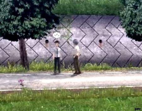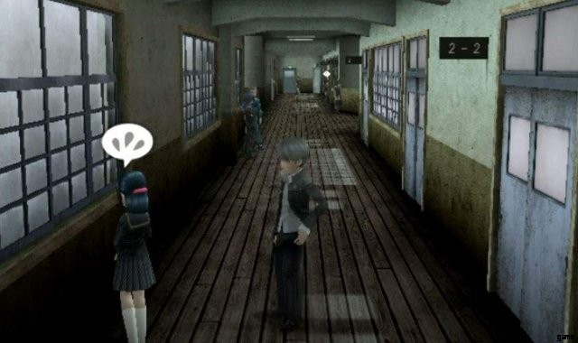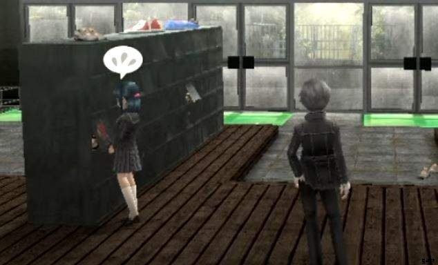 すると、学校の入り口近くの靴棚の前に女の子が立っています。彼女に話しかけると、彼女は逃げ出します。