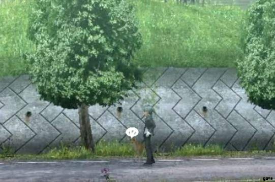 犬は翌日鮫川氾濫原に戻ってくるが、今度は並木付近。もう一度「やさしく話しかける」を選択すると、また逃げ出します。