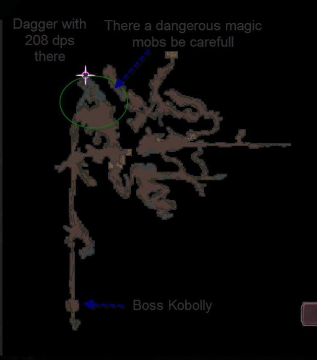 このダンジョンには、鋼鉄> 武器と防具、そして盾やブーツなどの金のアイテムが含まれています。そこでは 208 dps の短剣を手に入れることができます。このダンジョンを征服できない場合は、後で彼に戻ることができます。