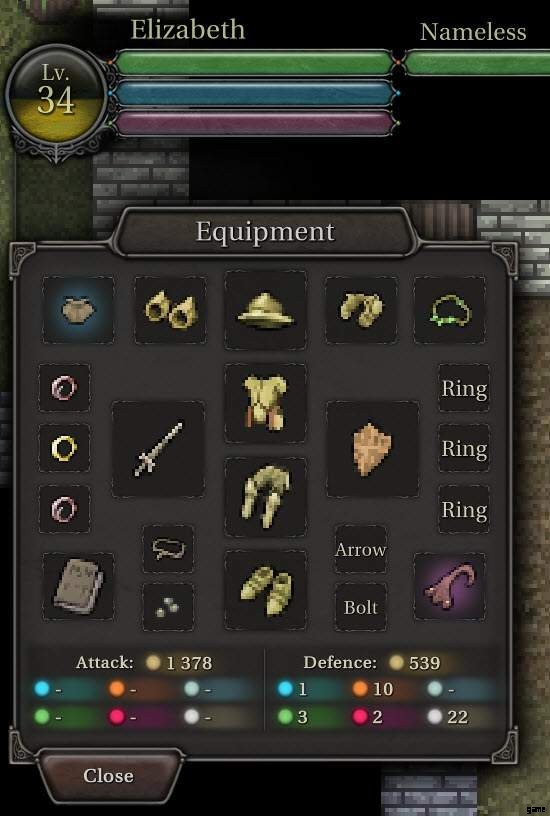 金のアイテム、杖、魔法攻撃付きの弓 (私には暗い) 160-118、短剣 416 ダメージ、2 時間の武器 (槍と大剣、大斧、大鈍器) を含む。