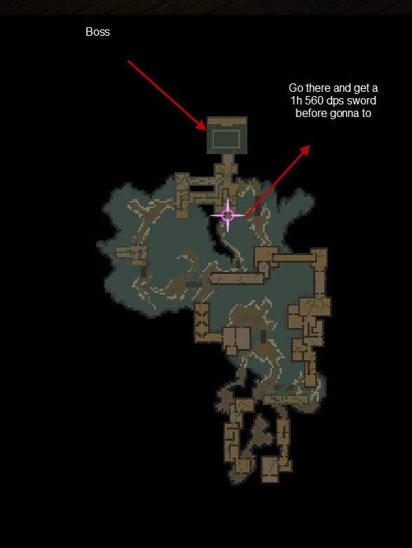 このダンジョンに行く前に、エルムソンの村に行って、より良いアーマーを購入する必要があります (ボスは 15 秒あたりに 777-1000 の再生を持っているため、ハード bc になります。彼を倒すことができない場合は、後で彼に戻ることができます)このボスは短剣を助け、7-14 前後の多くのポーションはキャラクターの能力のアップグレードに依存します)。