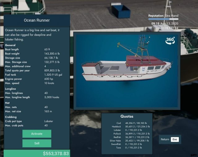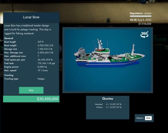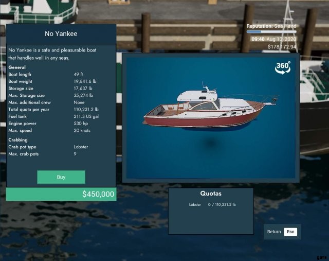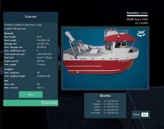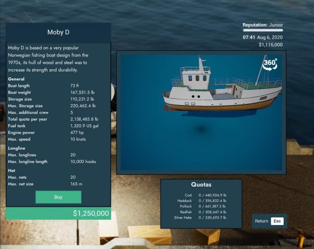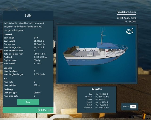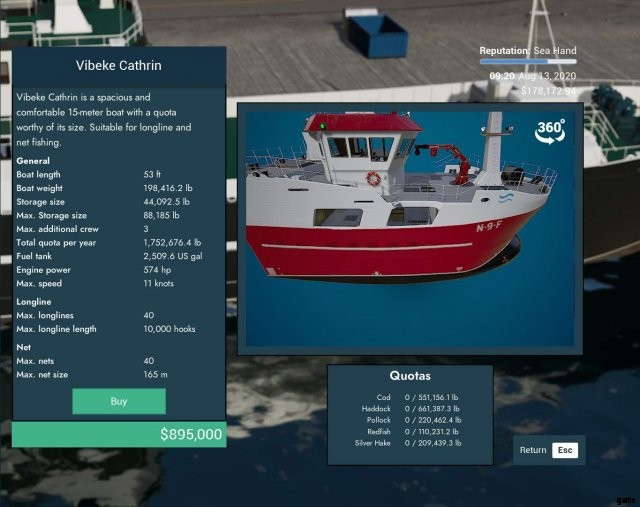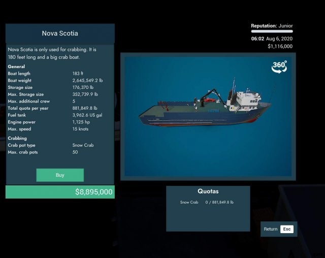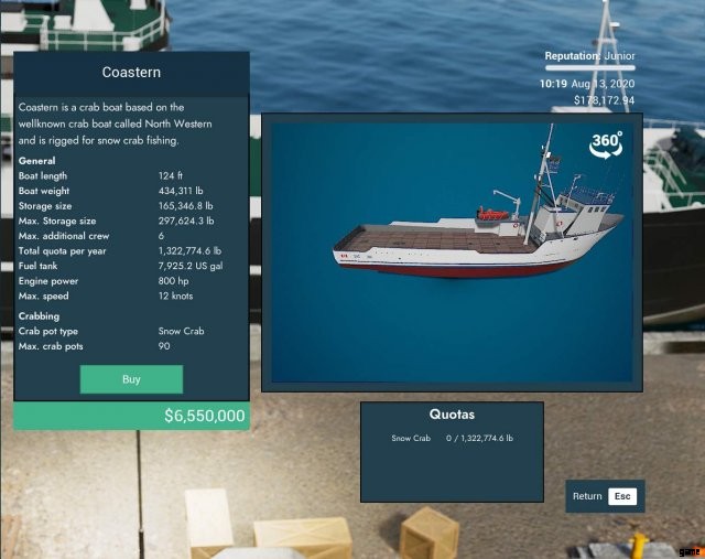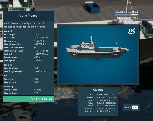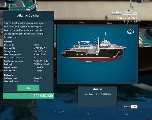 ゲーム内で最大のカニ船。また、ゲームで最も高価な船でもあります。