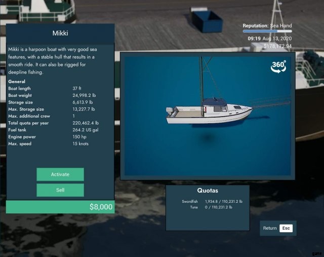 $10,000 で、Mikki (ゲームの開始時にすでに所有している) を除けば、ゲームで最も安い船です。