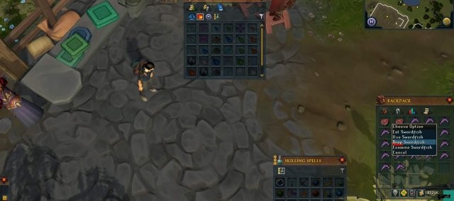 2. 自分の位置に満足したら、キャラクターの向きを決めます。そこに向かって正確に 1 マス移動し、選択したアイテムをドロップします (キャラクターにメカジキがあったため、メカジキを使用しています)。