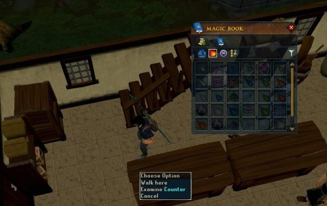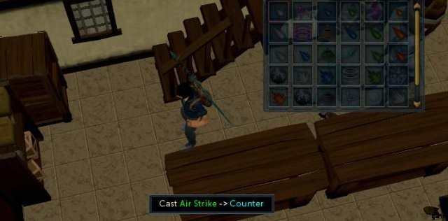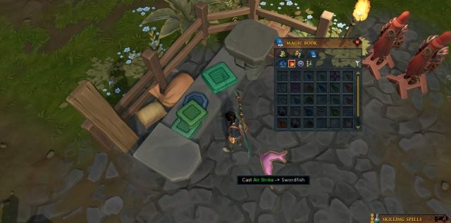 3. 曲がる場所に戻ります。そこに着いたら、スペルブックからキャストできる呪文を右クリックしてキャストを選択し、ドロップしたアイテムをクリックします(これを行うには魔法レベルの要件が必要ないことを示すために、最低レベルのエアスペルを使用しました).