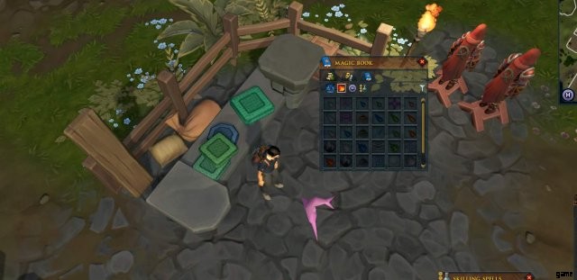 1. 魔法書を開いたら、向きを変えたい場所を選択します。この石のベンチを私のスポットに選びました。